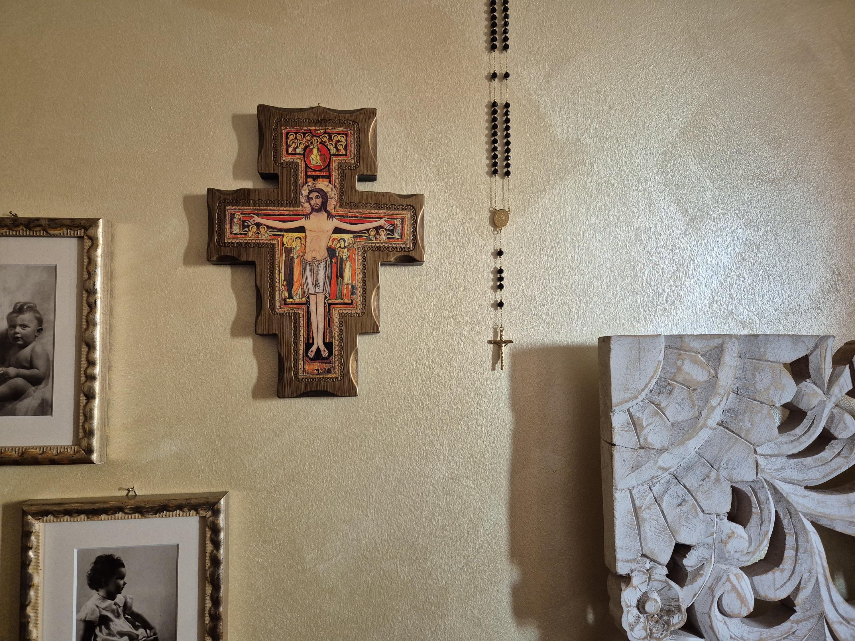 San Damiano Crucifix, handcrafted in Italian wood and cared for in every detail.