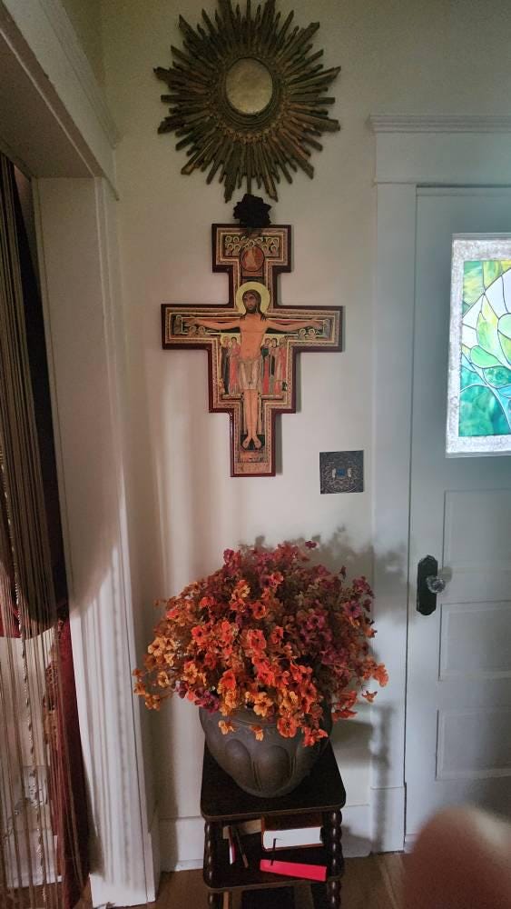 San Damiano Crucifix, handcrafted in Italian wood with gold foil stamping and attention to every detail.