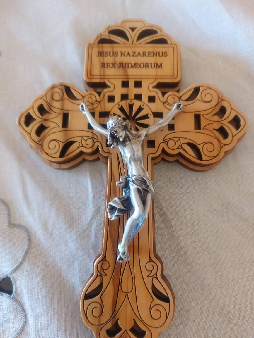 Forgiveness Crucifix to hang, handcrafted in national olive wood,